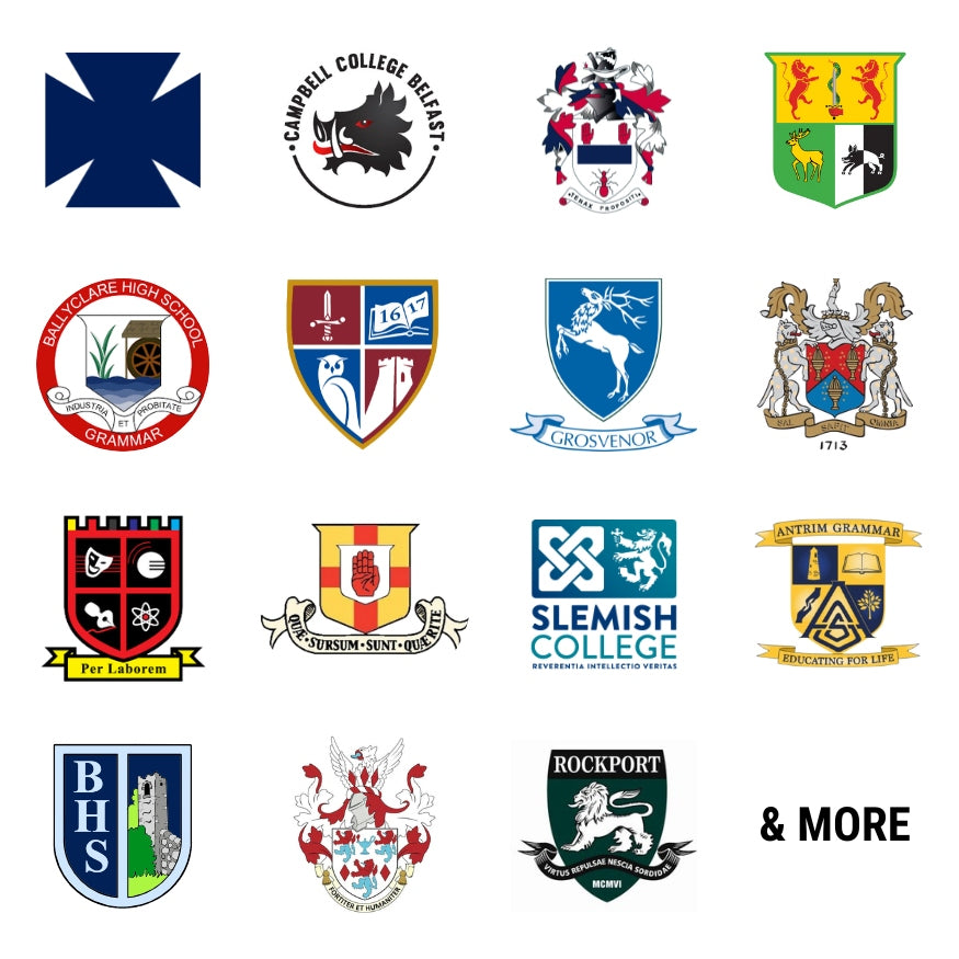 SOME OF OUR CUSTOMERS INCLUDE, METHODIST COLLEGE BELFAST, CAMPBELL COLLEGE, QUEEN'S UNIVERSITY, SULLIVAN UPPER, BALLYMENA ACADEMY, GROSVENOR GRAMMAR TO NAME A FEW.